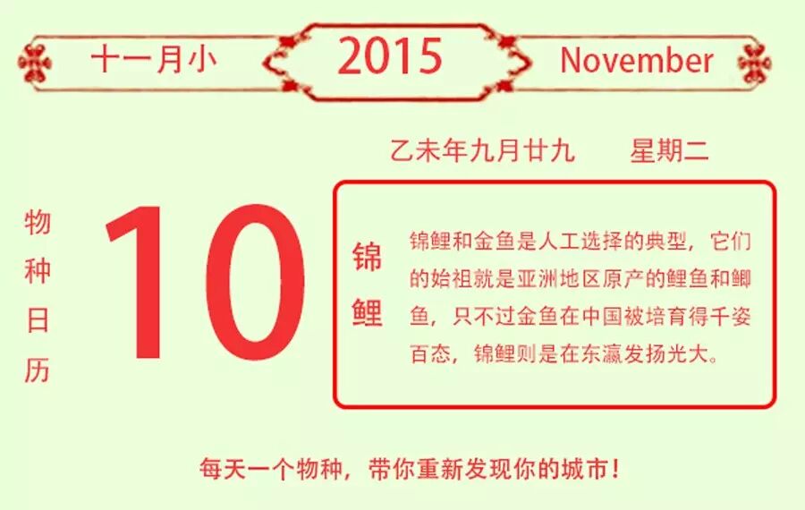 锦鲤和金鱼是人工选择的典型,它们的始祖就是亚洲地区原产的鲤鱼和鲫鱼,只不过金鱼在中国被培育得千姿百态,锦鲤则是在东瀛发扬光大。一般认为,锦鲤最早是在十九世纪初期的日本新潟县开始人工培育的,现在的锦鲤品种大多也源于此。而在中国古籍中,虽然在西晋时代就有饲养红鲤鱼作为观赏鱼的记载,而且诞生了“锦鲤”一词,在唐诗宋词中都多次出现,但实际上古代中国的“锦鲤”和现在风靡世界的锦鲤并不相同,这是两次完全独立的选育过程,两种“锦鲤”只是有着共同的祖先而已。
