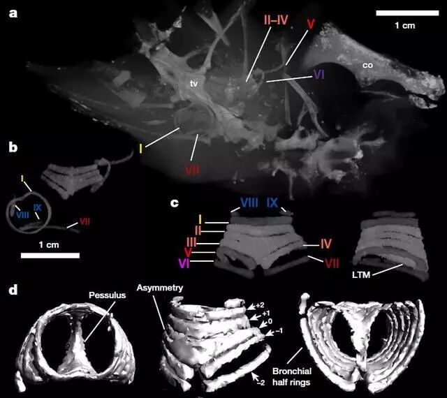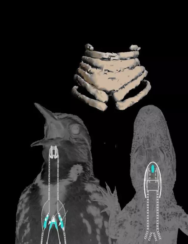 2016年年底,来自美国德克萨斯大学奥斯汀分校的茱莉亚·克拉克(Julia Clarke)团队,利用高分辨率X光成像技术对一具来自白垩纪末期的鸟类化石进行了更为精细的研究。他们欣喜地发现了埋藏在岩石中的气管-支气管组织,并利用计算机重构了迄今最为古老的鸟类鸣管结构,为人们研究鸟类生理结构和行为的演化提供了重要的参考依据。