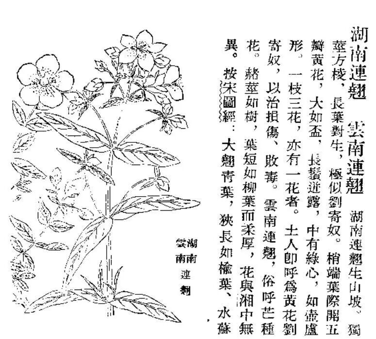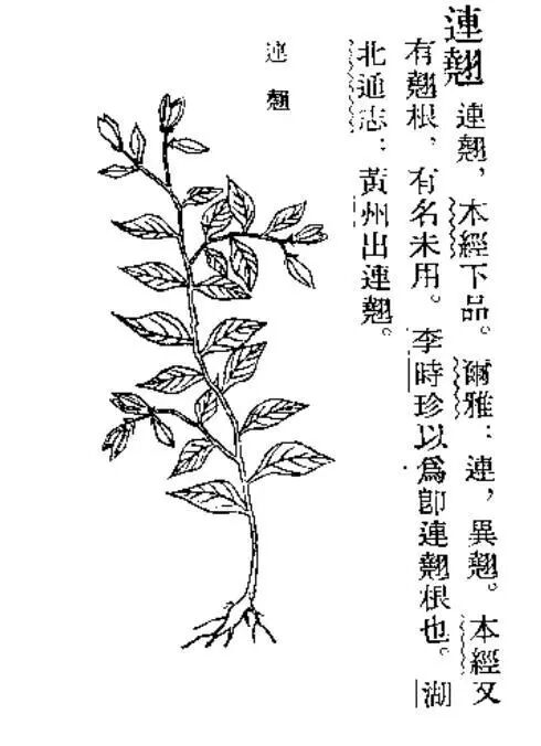 清代吴其濬《植物名实图考》中收录的两种连翘,左形态应为植物学上的连翘,右为金丝桃属植物,可能是黄海棠Hypericum ascyron。图片: