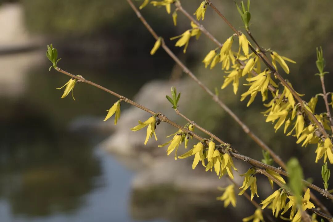 今年南方的春季迟迟不至,湿冷无常,各种植物的花期大概推迟了一个星期左右。至3月中旬,天气回暖,小区里的金钟花Forsythia viridissima才初绽新颜,无数金铃般的小黄花缀满枝头,令人心情愉悦,冬日阴霾一扫而空。