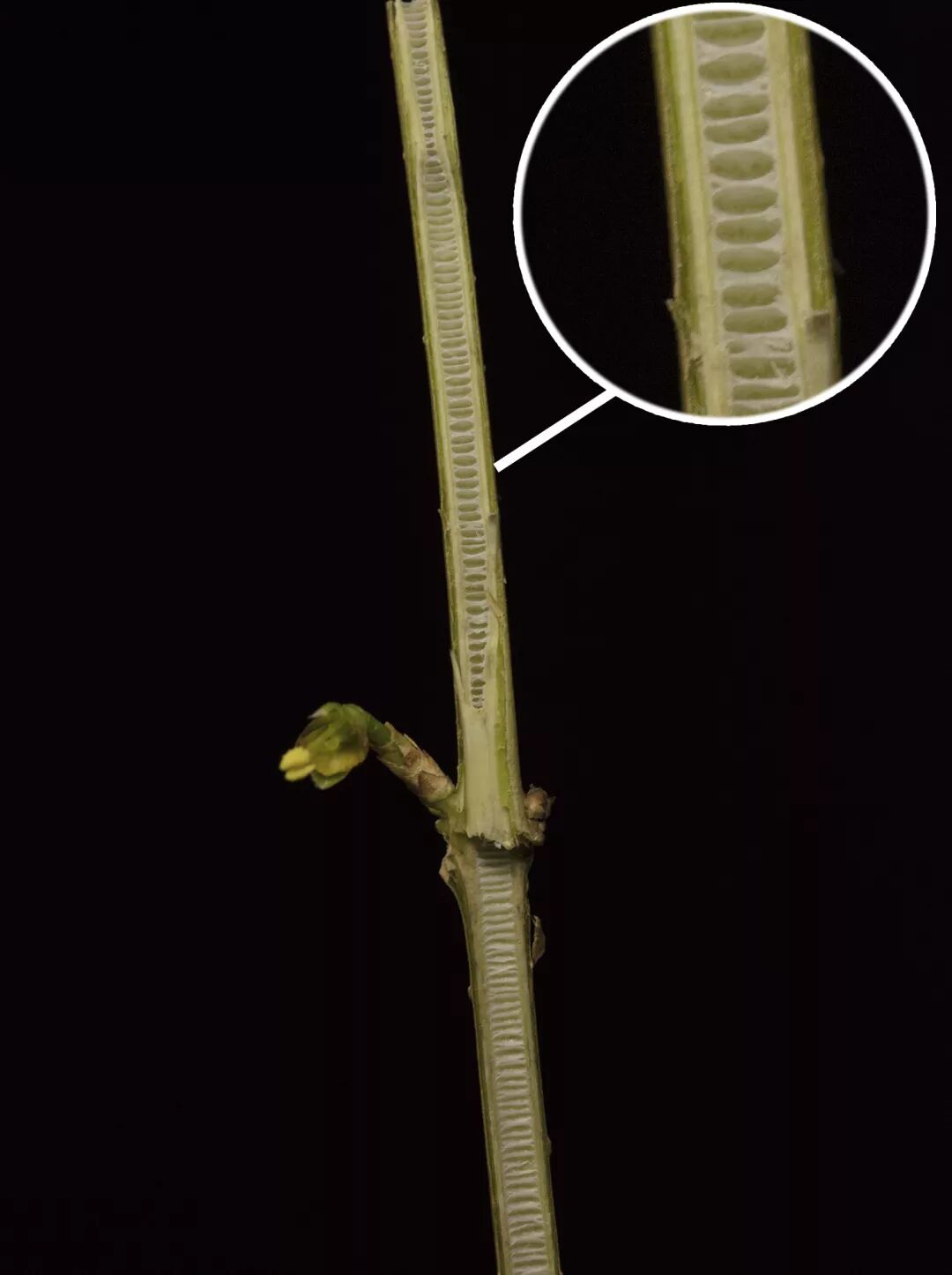 左图为金钟花的茎纵切面,右图为连翘的茎纵切面。图片:霜天蛾;心雨花露