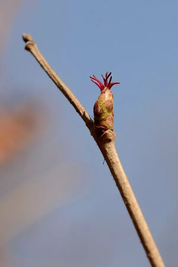 榛的雄花序与雌花。图片:不认识植物
