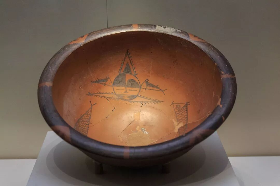 仰韶文化是黄河流域新石器时代文化的代表,半坡遗址是几大遗址之一。图为1955年半坡村出土的人面鱼纹彩陶盆,现藏于中国国家博物馆。图片:Zhangzhugang