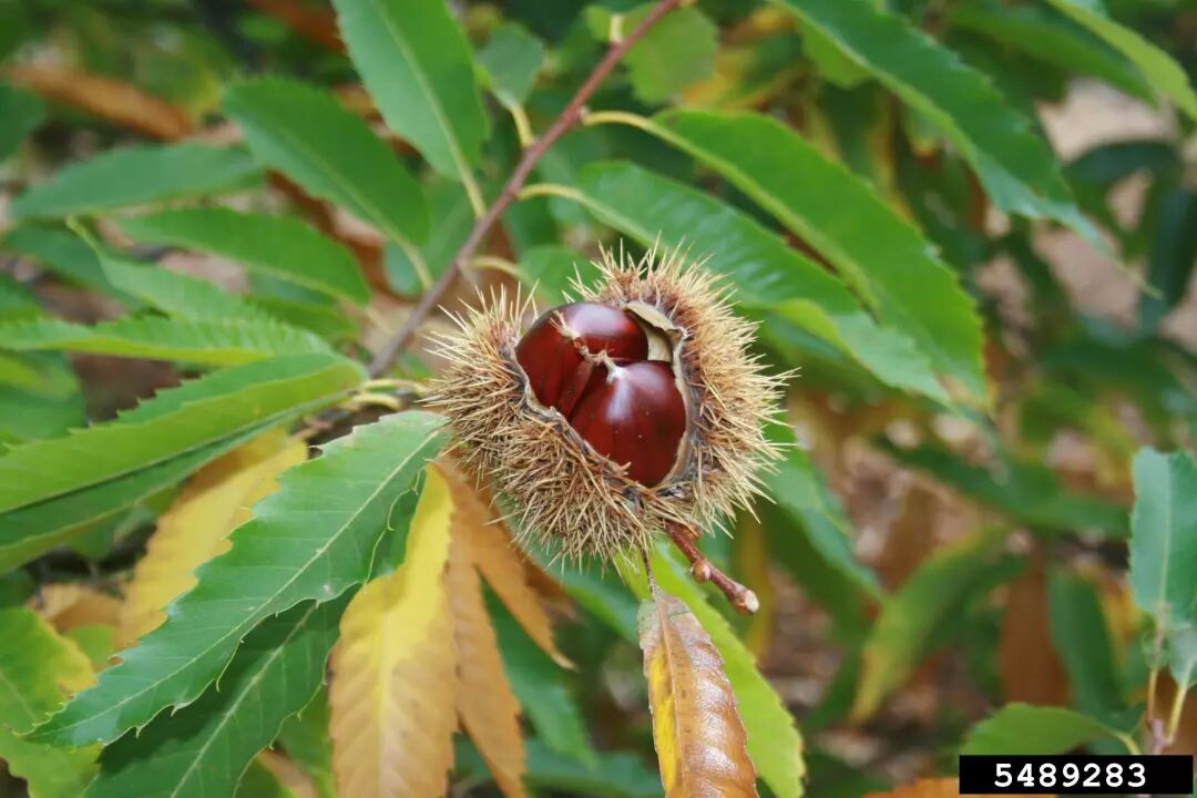 榛(左)与板栗(右)。图片:陈又生 / 中国植物图像库;Whitney Cranshaw, Colorado State University / Bugwood.org