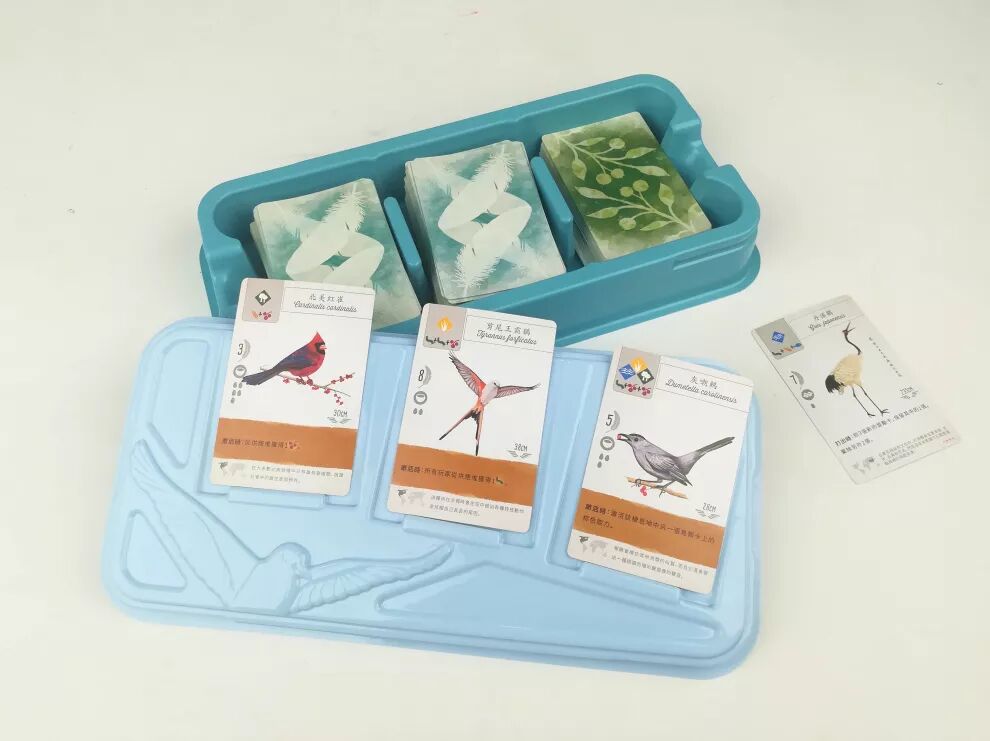 170张卡牌也有专门的收纳盒~不仅卡牌可以分门别类安放到盒子里,盒盖上还留有空槽,可以放置游戏过程中需要用到的鸟类卡牌。