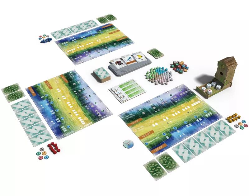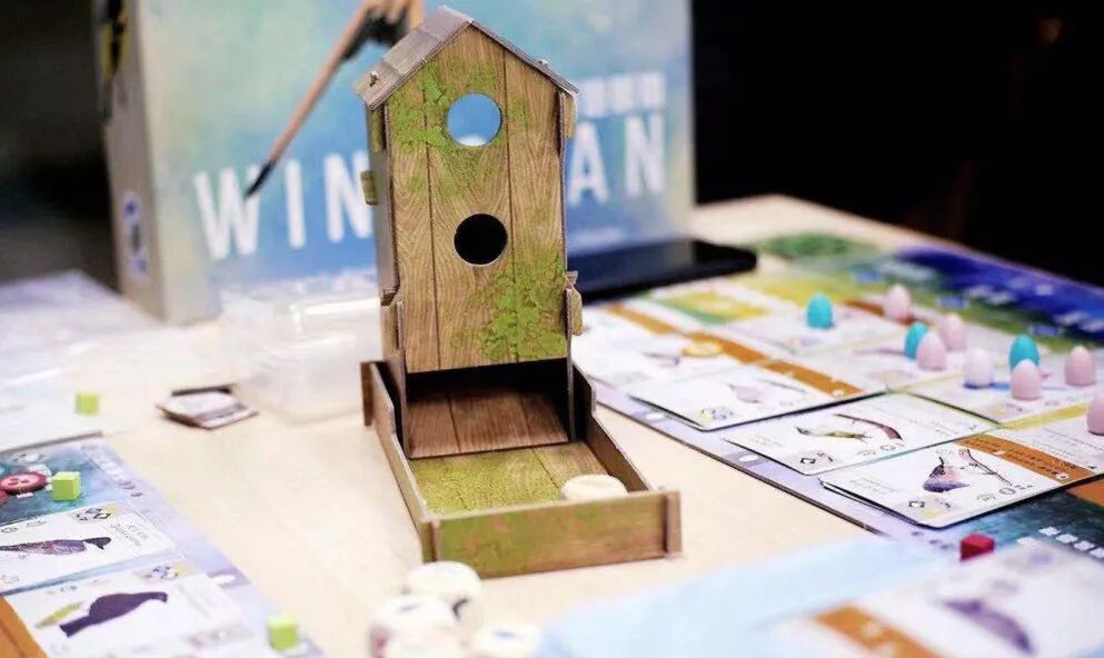 1座骰塔特意设计为鸟类喂食器的模样,结构精巧,覆着青苔的木质纹理,令桌游更有代入感。