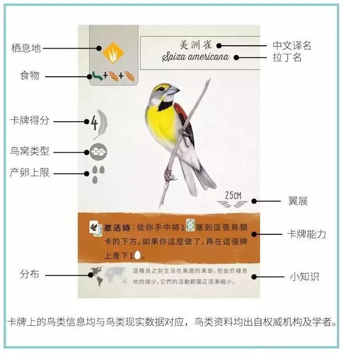 游戏的许多规则,每张鸟类牌的属性,都是按照现实鸟类的习性和行为来设置。