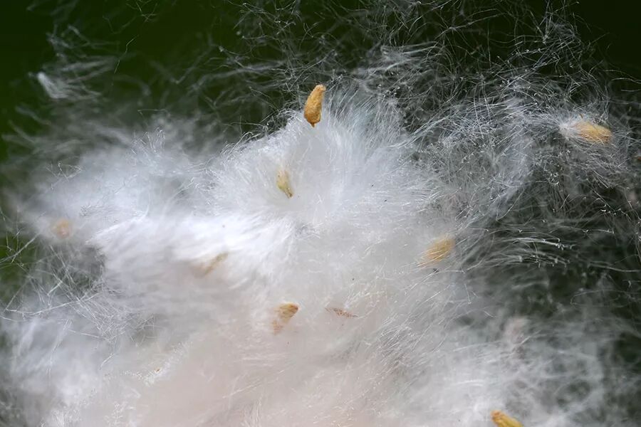 图中黄色的是冬瓜杨(P. purdomii)的种子,丰富的绵毛有助于种子随风传播。图片:不认识植物