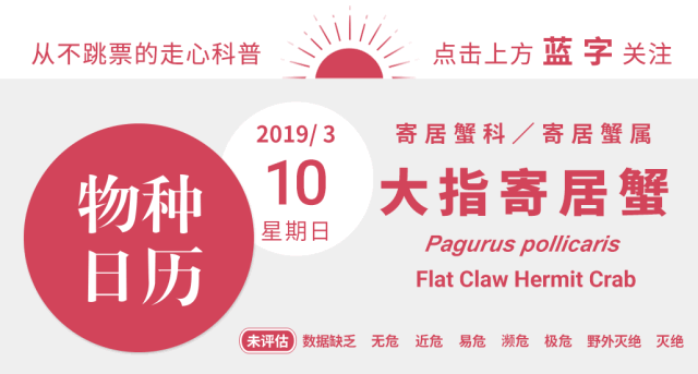 确实,生活在潮间带礁石间的寄居蟹大多数体型不大,两只钳子看着也就跟两个小号镊子一样,即使不小心被夹到也疼不到哪里去。不过,全世界一千多种寄居蟹中,并不是所有寄居蟹都是如此“文弱”的,例如今天的主角大指寄居蟹(Pagurus pollicaris),就长着一对威武的大钳子。