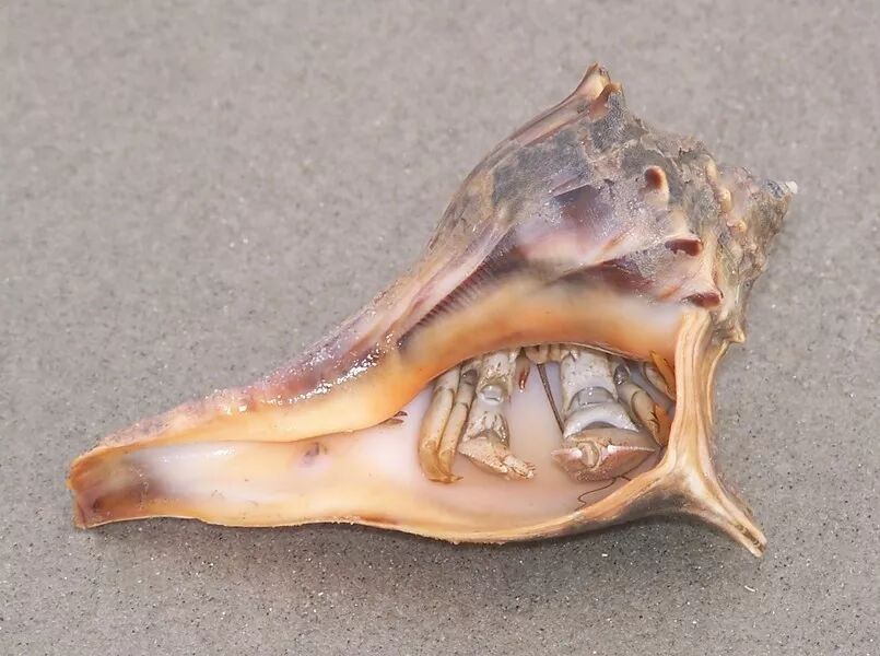 不同种类的寄居蟹,受自身的身体结构及栖息地所限,通常会偏好某一类的螺壳作为自己的栖身之所,大指寄居蟹喜欢栖居于峨螺或玉螺的壳中,这一点跟它的远房亲戚大寄居蟹(P. ochotensis)倒是很像,毕竟这些螺通常都能长得比较大,才能容得下大块头们。不过,大寄居蟹在我国黄海沿海城市被视为美味,因其长得像虾却不是虾而称之为“虾怪”,而在大指寄居蟹的产地,人们并不经常把它作为食物。