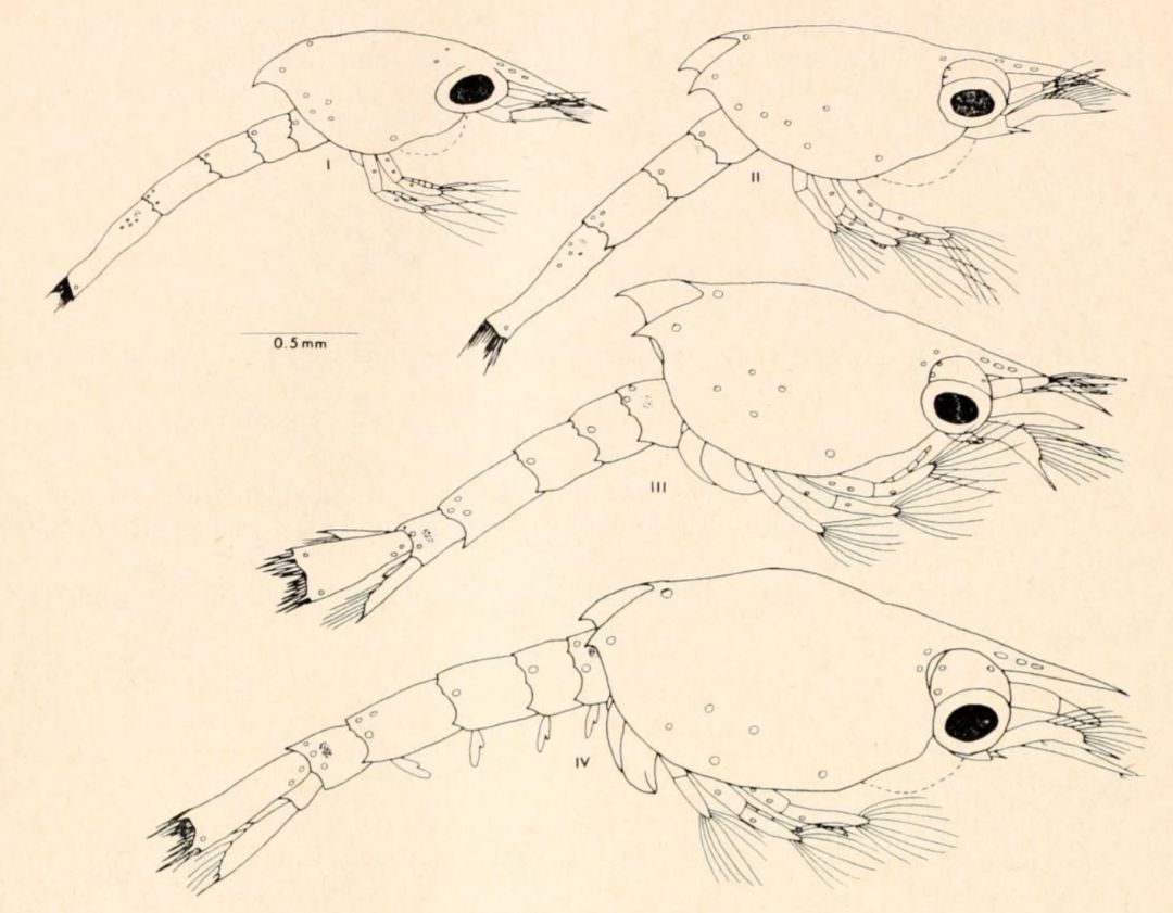 寄居蟹的幼体。图片:Carl F. Nyblade / Larval Development of Pagurus annulipes (Stimpson, 1862) and Pagurus pollicaris Say, 1817 Reared in the Laboratory (1970)