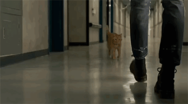在真相揭示之前,即使没看过漫画,观众也可以隐约察觉出它不是一只猫。注意看,当它所处的环境亮度突然变化时——比如开灯、从黑暗的停机坪飞到阳光下等——它的瞳孔形状都没有太明显的变化,一直维持着橄榄型。