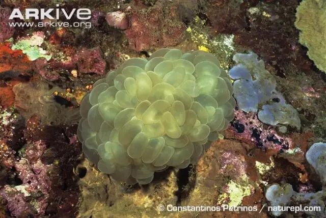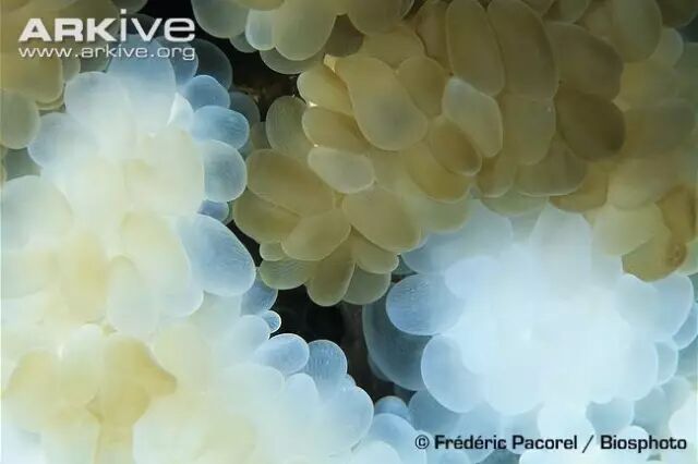 白天,泡囊珊瑚会吹起泡泡,煞是可爱。到了晚上,它们不仅会收起鼓起的囊胞,还会伸出肉质的、布满刺细胞的触手,以捕食者的形象重新登场,开始捕食海水中的浮游生物。