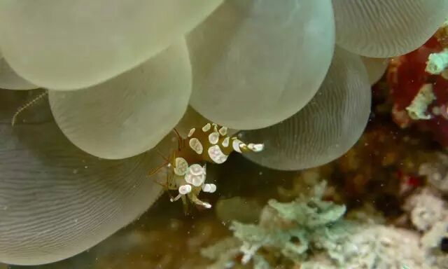 一种珊瑚虾(Thor amboinensis):“暗中观察,今晚吃啥?”图片:berniedup / flickr