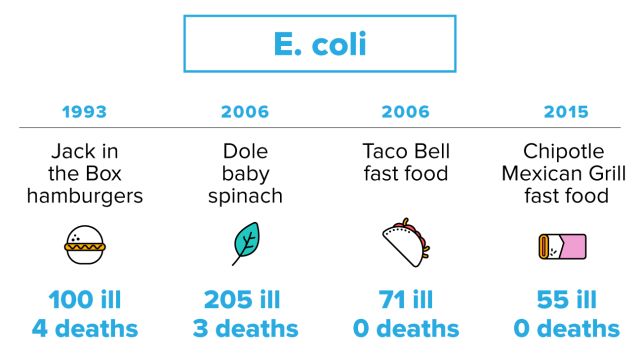 致病性大肠杆菌在美国引发的流行案例。图片:healthline.com