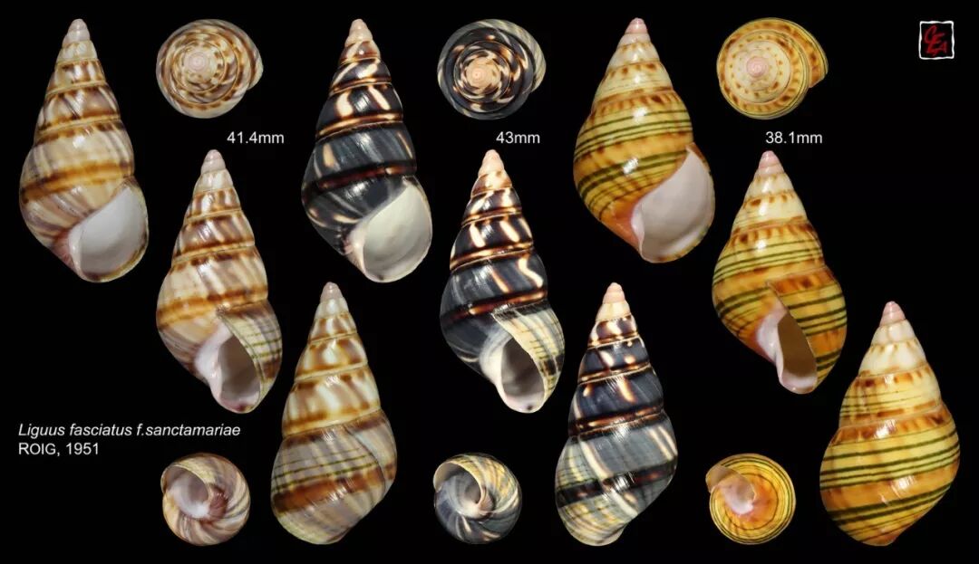 另一种彩色蜗牛不得不提,它就是古巴所特有的“古巴糖果蜗牛”,它们来自Polymita属,最常见的如叉线海明蜗牛(Polymita picta),和旋线树蜗牛相似,它们也有许多个亚种,被认为是世界上最美丽的蜗牛。