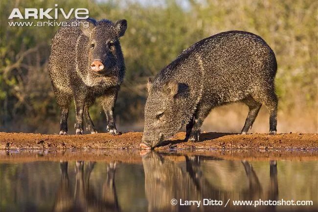 在水边喝水的领西貒们。图片:Larry Ditto / photoshot.com / arkive.org