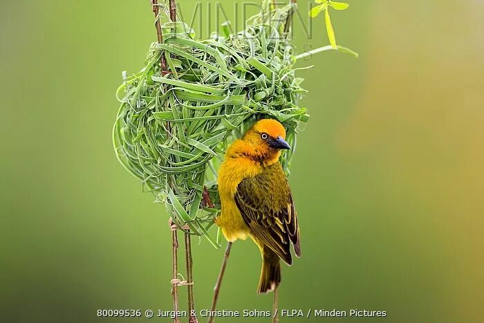 吸引鸟类不假,但吸引的并不是鹤,这些花朵吸引的是一种叫南非织雀(Ploceus capensis)的小鸟,听名字就知道这些小鸟的特殊技能是擅长在树上编织出鸟巢。不过鹤望兰跟这些小鸟的建筑工作并没有直接联系,花朵其实是这些小鸟的食堂。