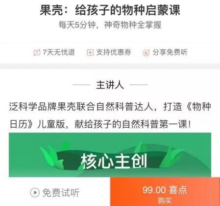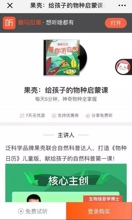 之前,想听物种日历畅听版,必须购买《物种日历》儿童礼盒,使用音频兑换卡进行兑换: