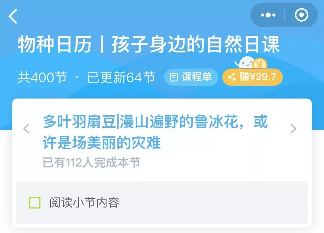 还拜托果壳饭团制作了在线音频版,每晚20点在“饭团一课”小程序上准时更新,已经连续更新了65天。《物种日历》音频版有着丰富的内容,可以用五句话概括它: