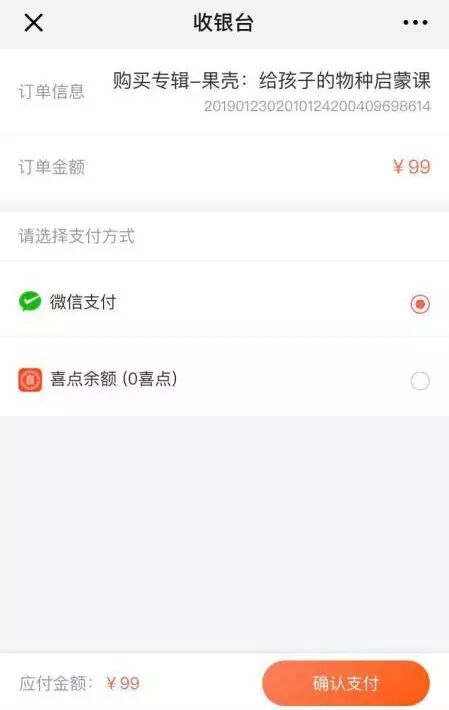Step 6. 选择支付方式,确认支付,购买成功,即可随时在喜马拉雅APP查看完整课程。