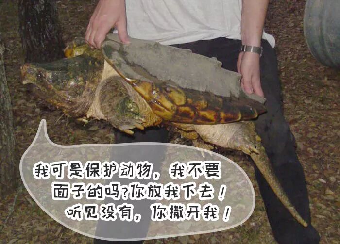 小鳄龟:“被人类捉住了,我要当缩头龟了!”