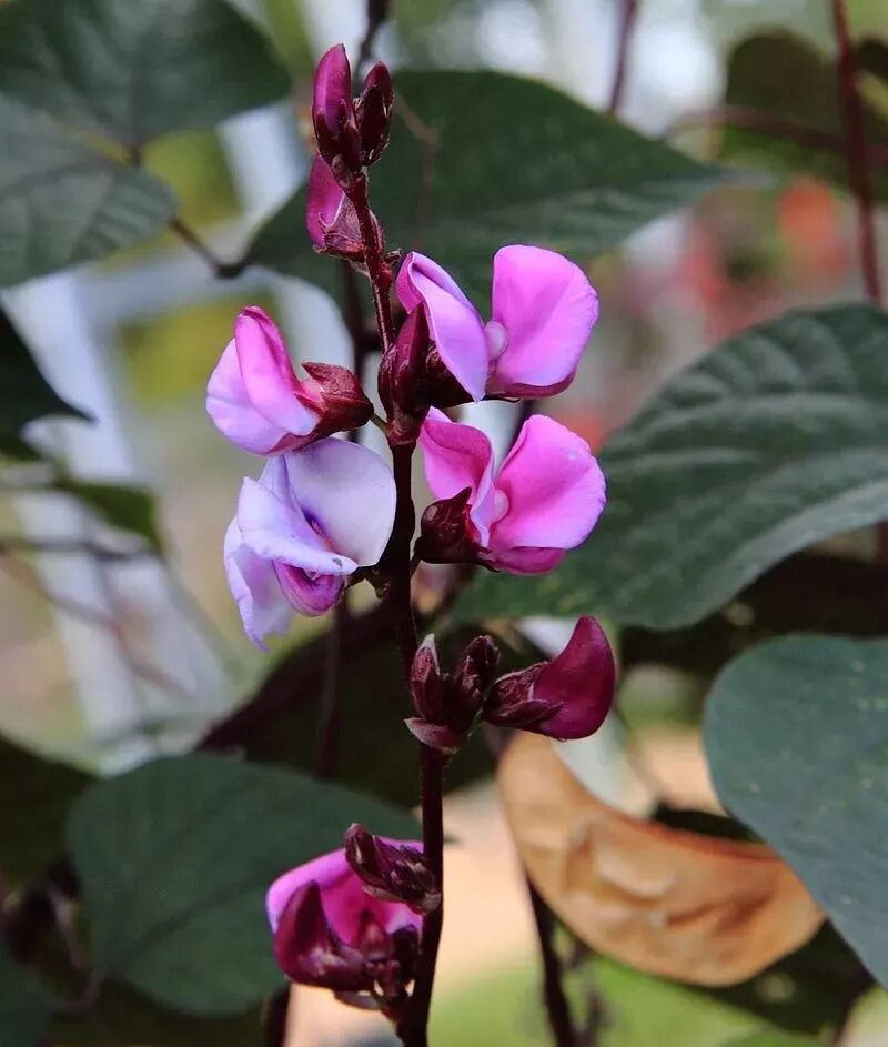 后来,扁豆被引入东亚和东南亚地区,栽培驯化成专门食用豆荚的品种,脆嫩多汁的果荚,符合国人口味。常吃的扁豆为白绿色,不过有些开紫花的品种,能结出紫红色的荚果,泛着油润的光泽,煞是好看。还有些品种幼时豆荚青绿色,成熟时边缘能被“晕染”成红色。有些地方把这些美花美果品种种在房前屋后,当成一种观赏植物。