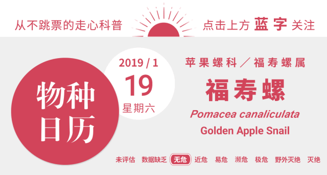 说起贝类,人们的脑海中可能马上就会浮现出几种知名贝类的样子:拥有宽大腹足的鲍、体型巨大的椰子涡螺、山野间随处可见的田螺,或是今日的物种日历主角,拥有一个好名字的福寿螺(Pomacea canaliculata)。