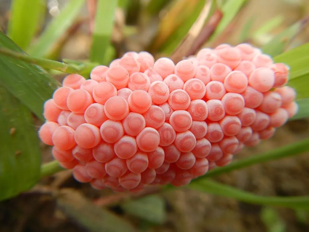 随处可见的福寿螺卵,时刻警醒着我们。图片:Bernard DUPONT / Flickr