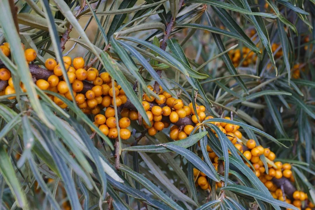 作为胡颓子科的一员,沙棘的叶子背面也是银白色的。图片:Sodininkas.com