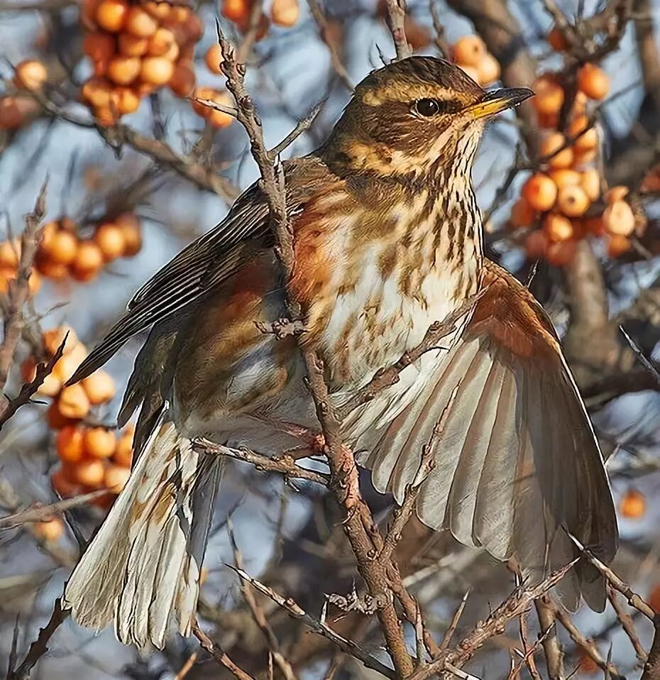 不知道杂食的白眉歌鸫能不能接受沙棘的酸涩。图片:Dwergenpaartje / wiki commons