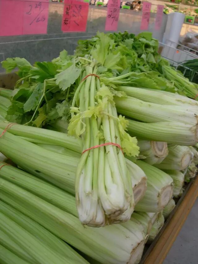 再说到西芹,正如前文所说,这是欧洲培育的品种,特点就是叶柄肥厚,纤维比旱芹来的少,并且是实心的,每棵的个头可以高达1公斤。西芹脆嫩多汁,不管是生拌还是清炒都是好菜一道。不过,西芹的生长期比较长,身价自然比两个月就采收的旱芹要来的高。在餐馆里,我们时常会碰到假冒的西芹的“李鬼”——凡西芹百合、白果西芹中唱主角的通常都是旱芹了。