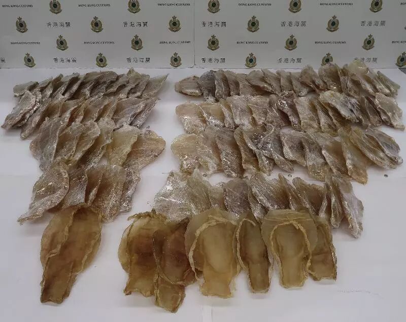 2018年年初,在香港查获的加利福尼亚湾石首鱼干鳔。图片:香港海关