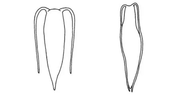 左为黄唇鱼鳔,右为加利福尼亚湾石首鱼鳔,区别是两条的测管的长度,但是干制后由于拉扯和变形等原因,通过外形难以区分两者。