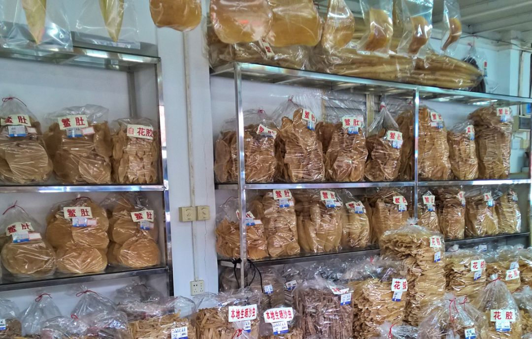 海鲜干货店内各式各样的花胶。图片:浪里小海豚