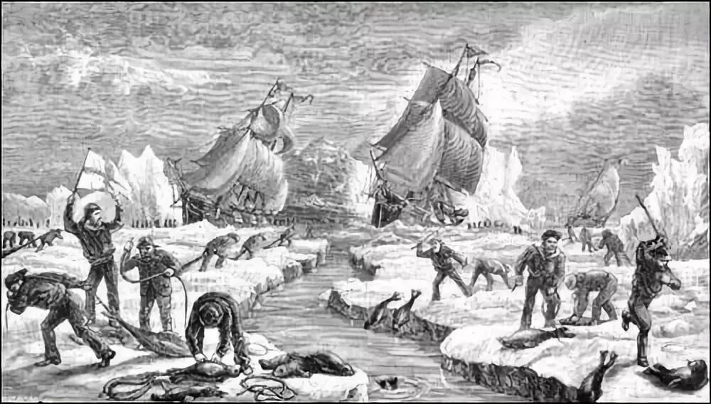 人们在加拿大纽芬兰捕杀海豹的场景。图片:Percival Skelton(1883)