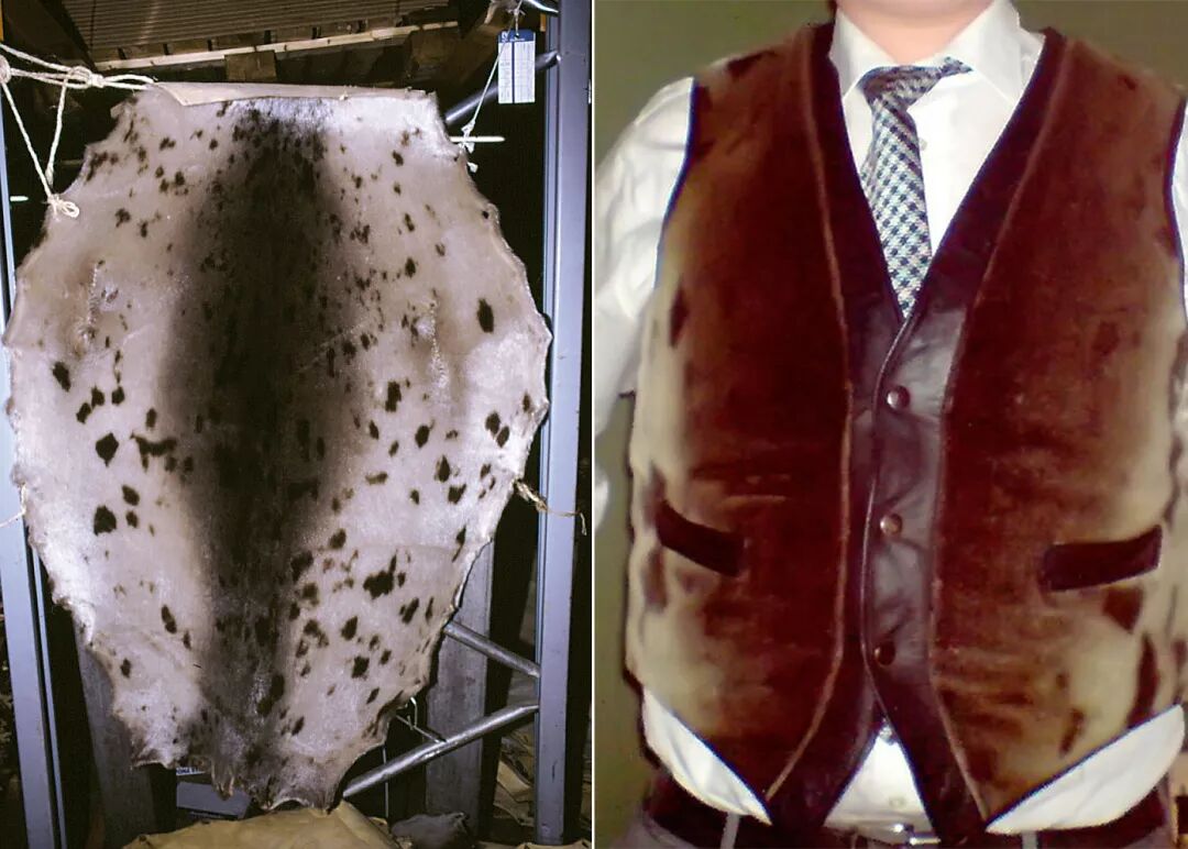 一张琴海豹皮以及海豹皮制成的马甲。图片:Vadeve & Alexao / wikimedia