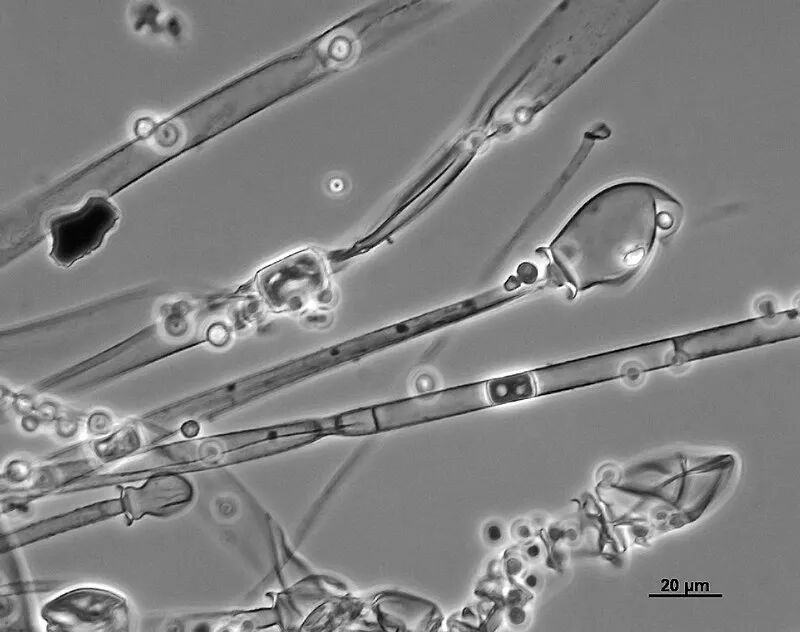 落叶上的毛霉Mucor。图片:Thiedbold/Wikimedia Commons