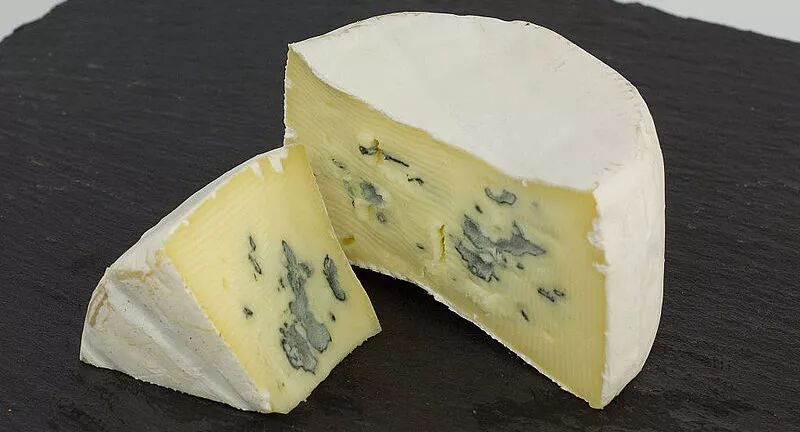 黄色的腐乳块与蓝奶酪。图片:Wikipedia