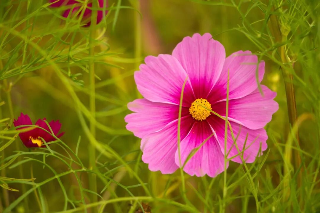 这是一朵秋英Cosmos bipinnatus,也叫大波斯菊。虽然名字里带着“波斯”,但其实是一种原产墨西哥高原的一年生草本菊科植物。这种花茎叶纤细、花朵艳丽,作为一种重要的观赏植物在世界各地广有栽培。