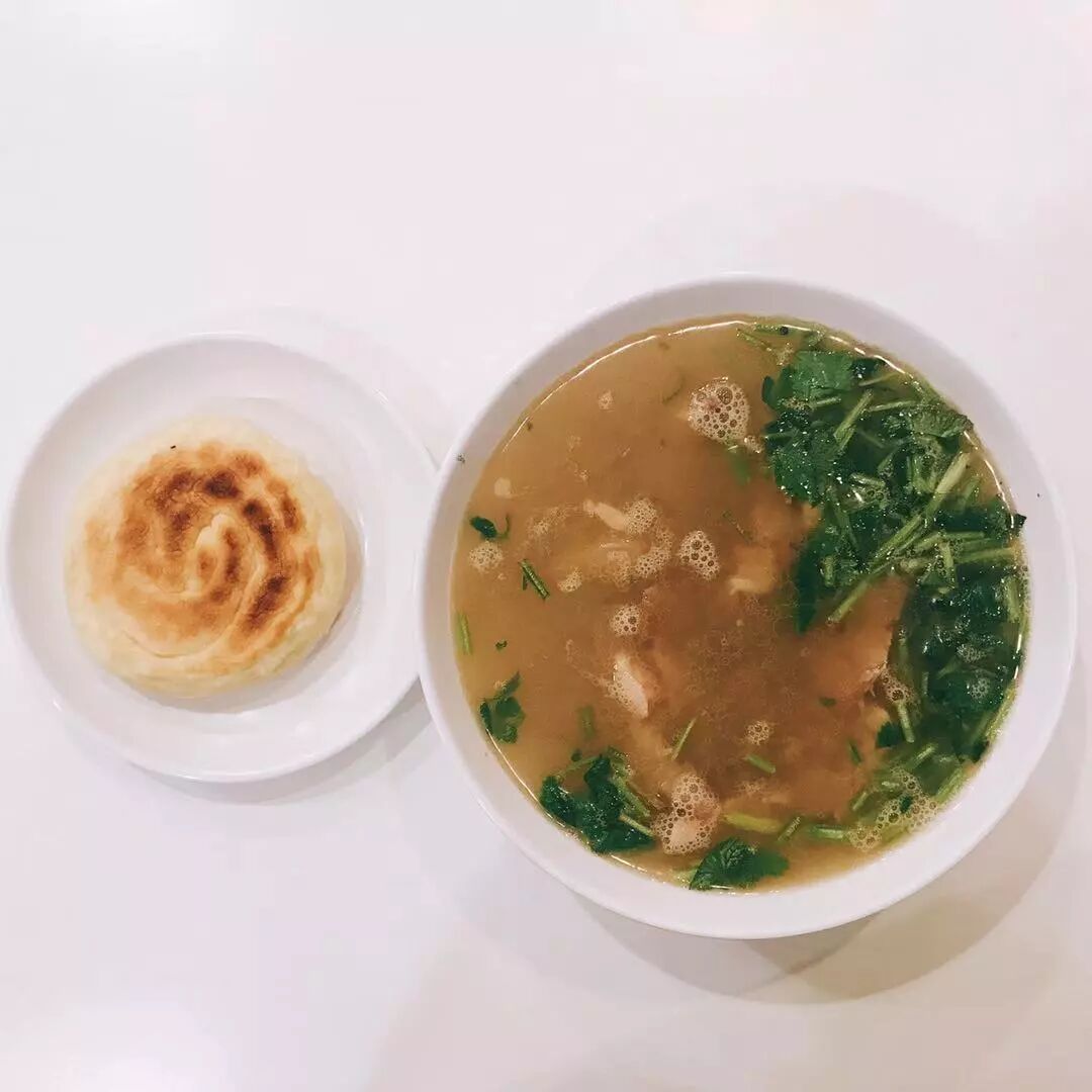 光喝羊肉汤当然是喝不饱的,我喜欢搭配一个饼子,掰成小块扔进汤里,稍等片刻,饼吸饱了汤汁就会变得软糯中带着点嚼劲,既有面饼本身的甘甜,还能尝出羊汤的鲜甜,一个饼搭配一碗汤,就能让你在喝的一身汗流浃背的同时,也把寂寞的胃塞得满满的。