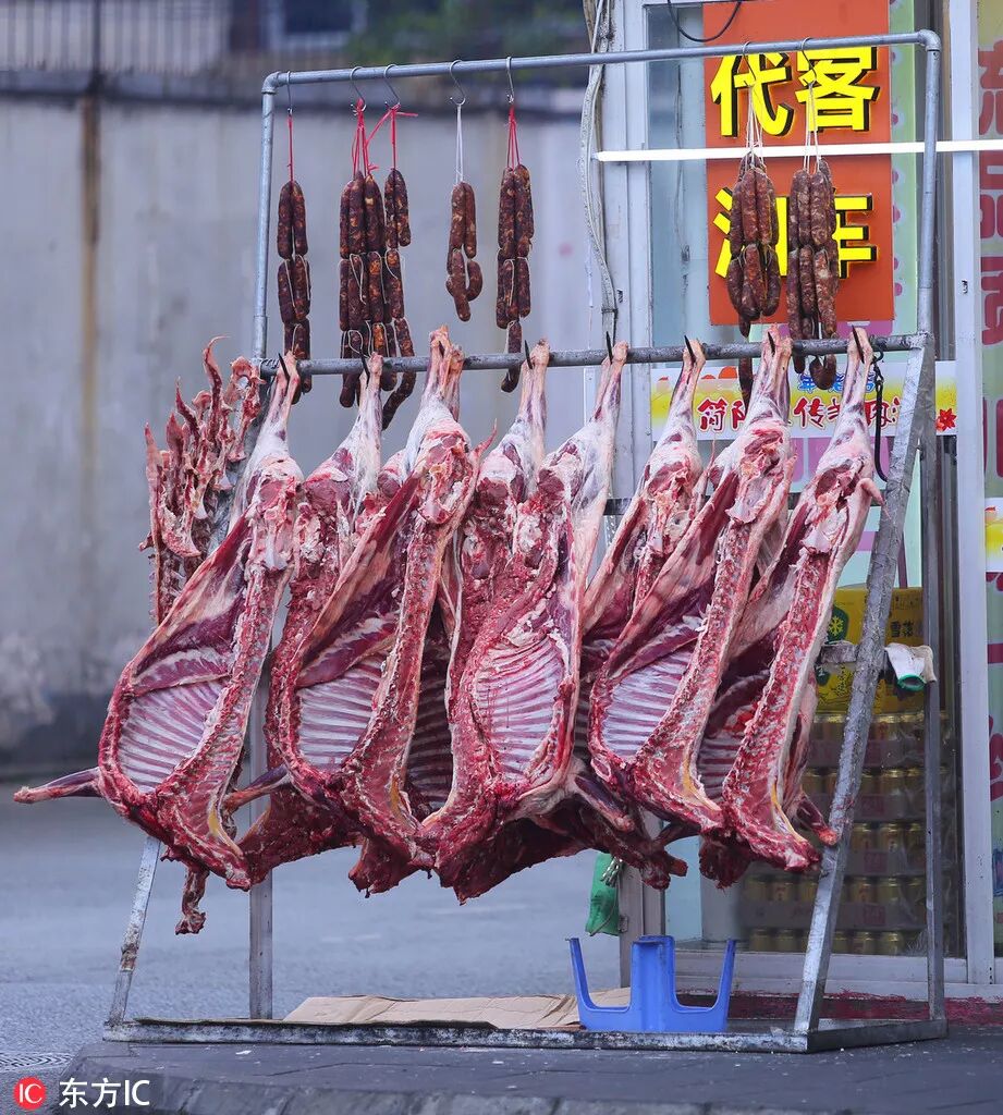 店门口的新鲜全羊,也是招徕生意的法宝。图片:东方IC