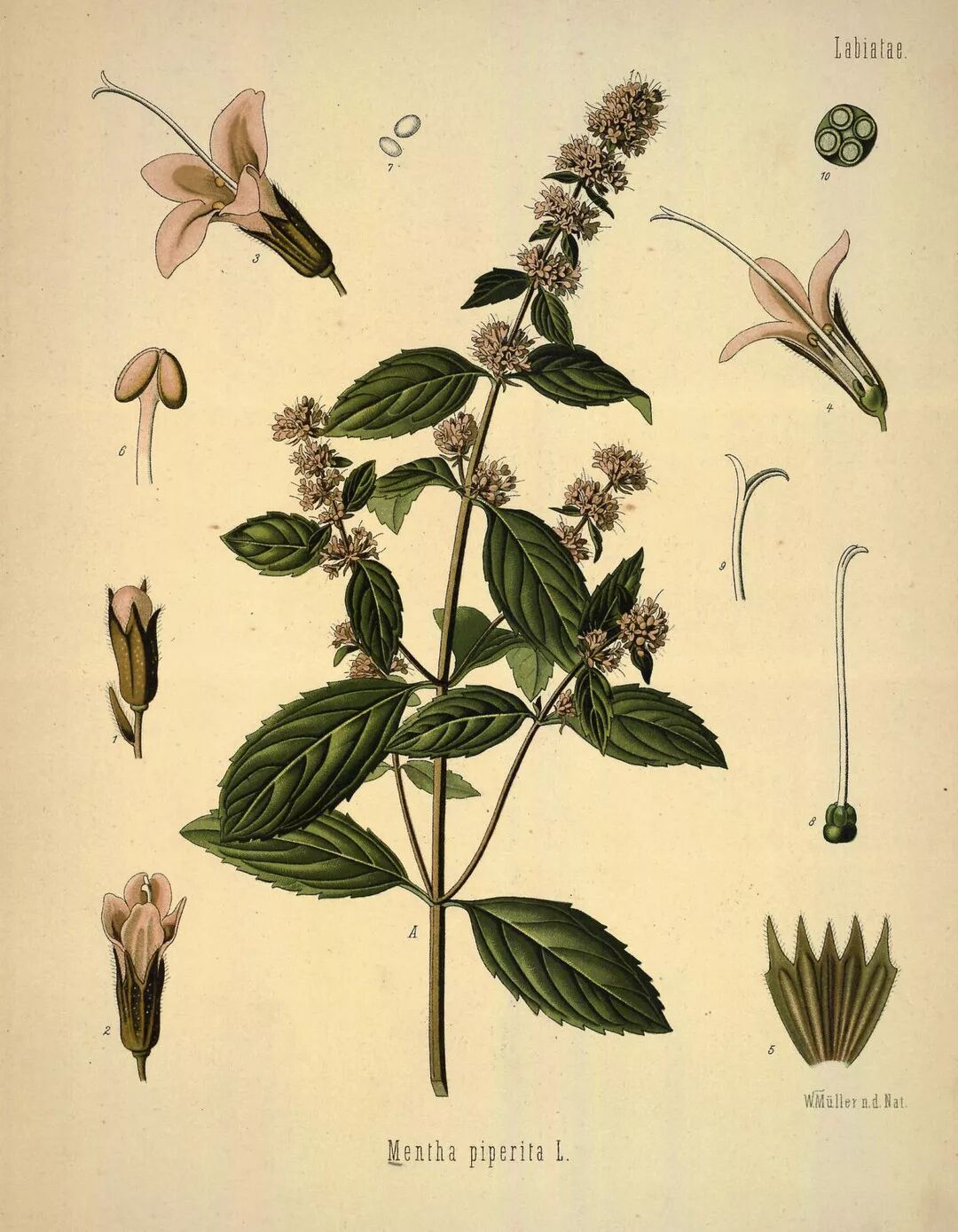 辣薄荷的插画。图片:Kohler's Medizinal-Pflanzen band.1 (1887)