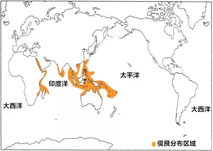 儒艮需要生活在温暖的水环境中,并且要有健康、丰饶的海草床作为觅食场所。因此,它们仅分布在太平洋、印度洋中有可食海草生长的热带、亚热带浅海区域,北至日本冲绳县,南至澳大利亚。