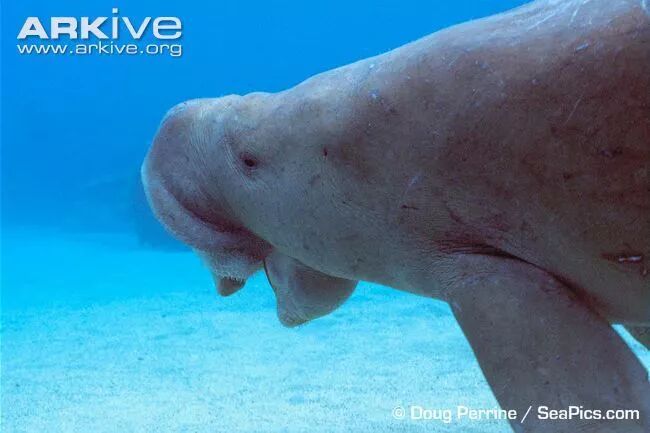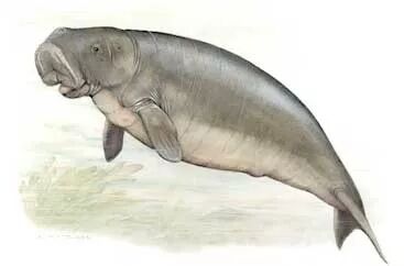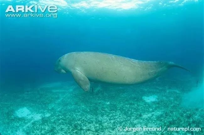儒艮(Dugong dugon)属于海牛目儒艮科,这种庞然大物成体体长可达3米,体重有450公斤。寿命可达70年以上,性成熟年龄为6~17岁,妊娠期为13~15月,一胎仅产一头幼仔。主食海草,辅食小蟹、海鞘等来补充营养。它们性情温和,游速缓慢,姿态优雅。