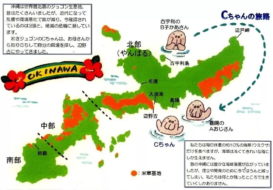 冲绳的三头儒艮的活动范围。图片:webronza.asahi.com