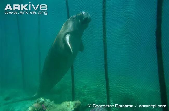 一头年轻的儒艮被困在了渔网之中。图片:Georgette Douwma / naturepl.com