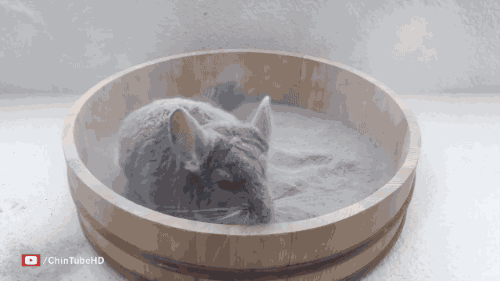 龙猫洗澡会弄得烟尘飞扬,建议选择带盖子的澡盆。图片:ChinTubeHD / YouTube