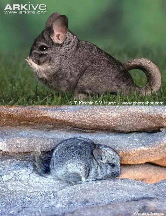 我们的宠物龙猫来自长尾毛丝鼠(上),没有变成宠物的短尾毛丝鼠(下)是它们的近亲。图片:T. Kitchin & V. Hurst / photoshot ;Jaime E. Jimenez