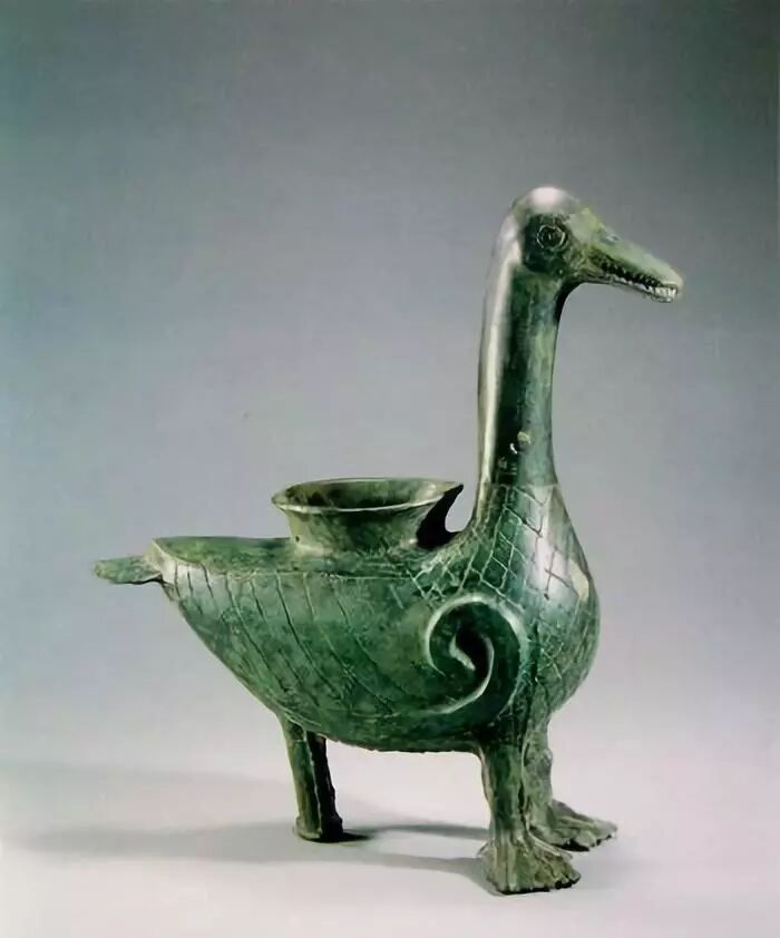 已知最早的“凫”字出现在出土的西周中期青铜器上镌刻的金文里。1955年,在辽宁凌源市还发现了一件西周时期的青铜鸭尊,也被称作“凫尊”。这件尊器制作精美,生动传神。要知道“尊”是当时的酒器造型之一,而鸭尊则是较为常见的器型。“凫”字的出现和鸭尊的普遍使用,应当表明至少在西周时期,先民们跟“凫”之间已经发生了比以往更为紧密的联系,甚至可能已经开始驯养家鸭了。